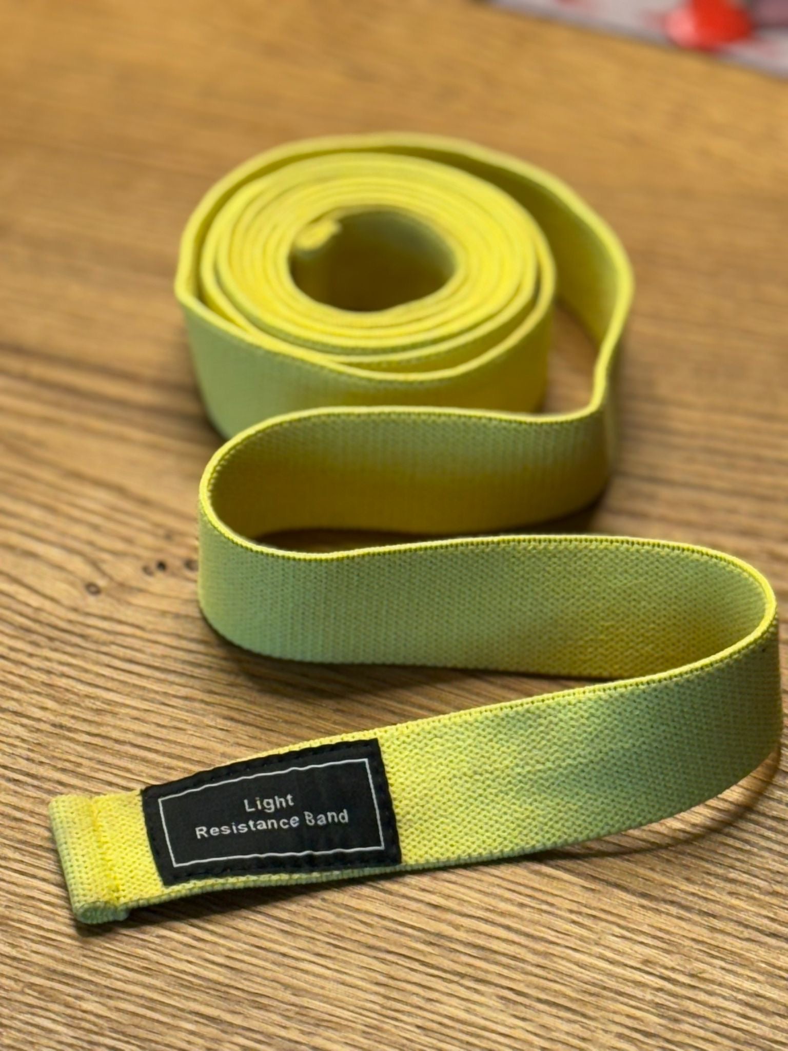 Dehnbares Fitnessband (gelb) in der "Gurtversion", ideal geeignet zum Reittraining mit der "X-Bandage".